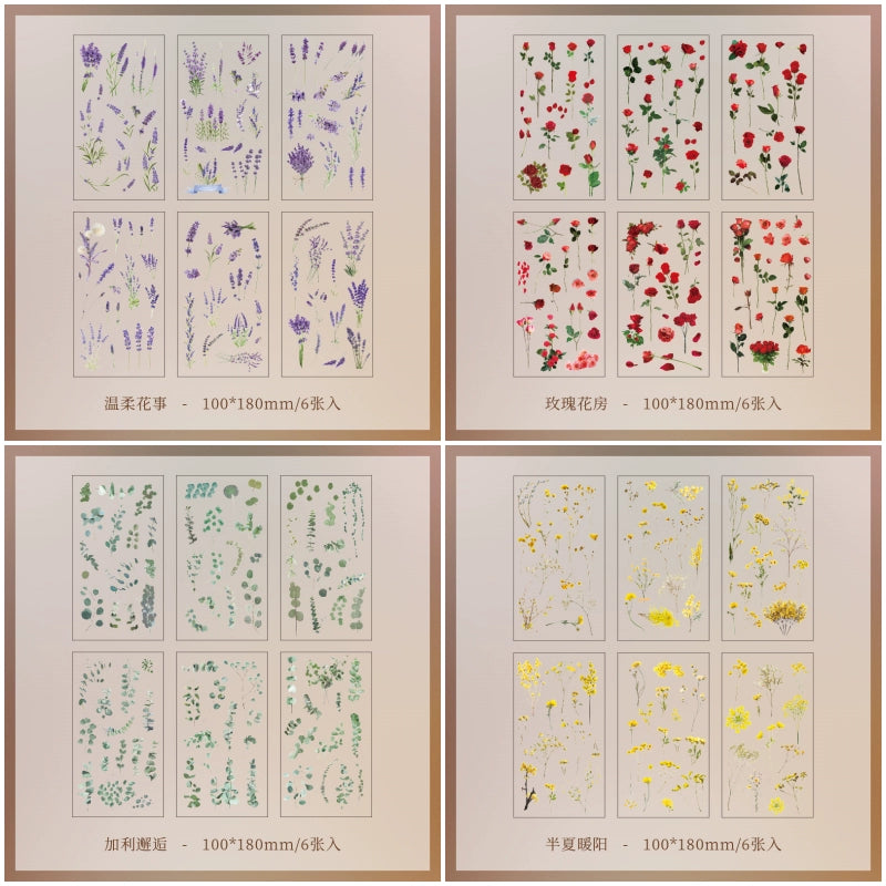 Each set includes a variety of floral and plant designs to inspire your creativity.