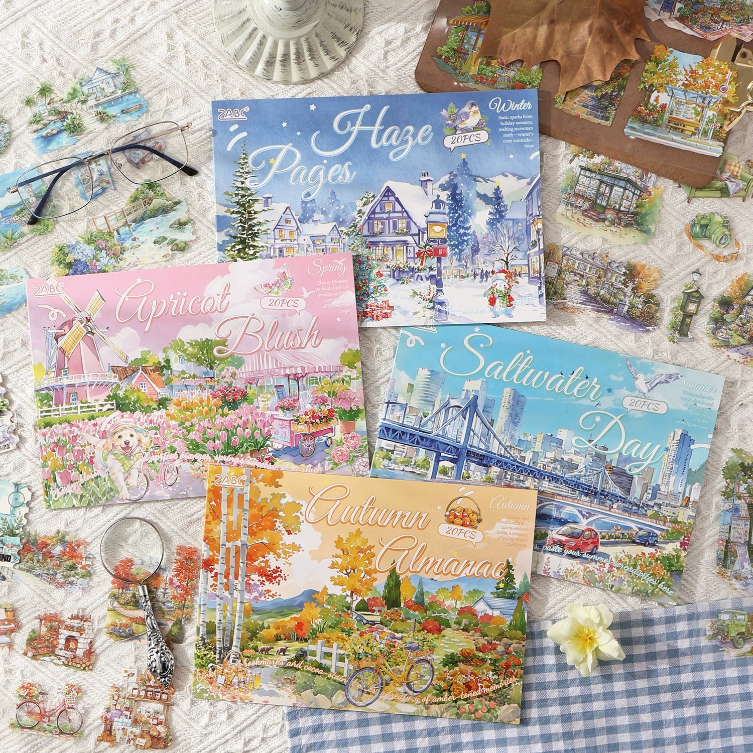 Capture the beauty of all four seasons with this exquisite large-format PET sticker collection. Each sheet features stunning seasonal motifs inspired by spring blossoms, summer sunshine, autumn leaves, and winter landscapes.