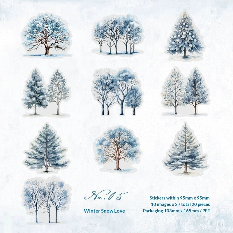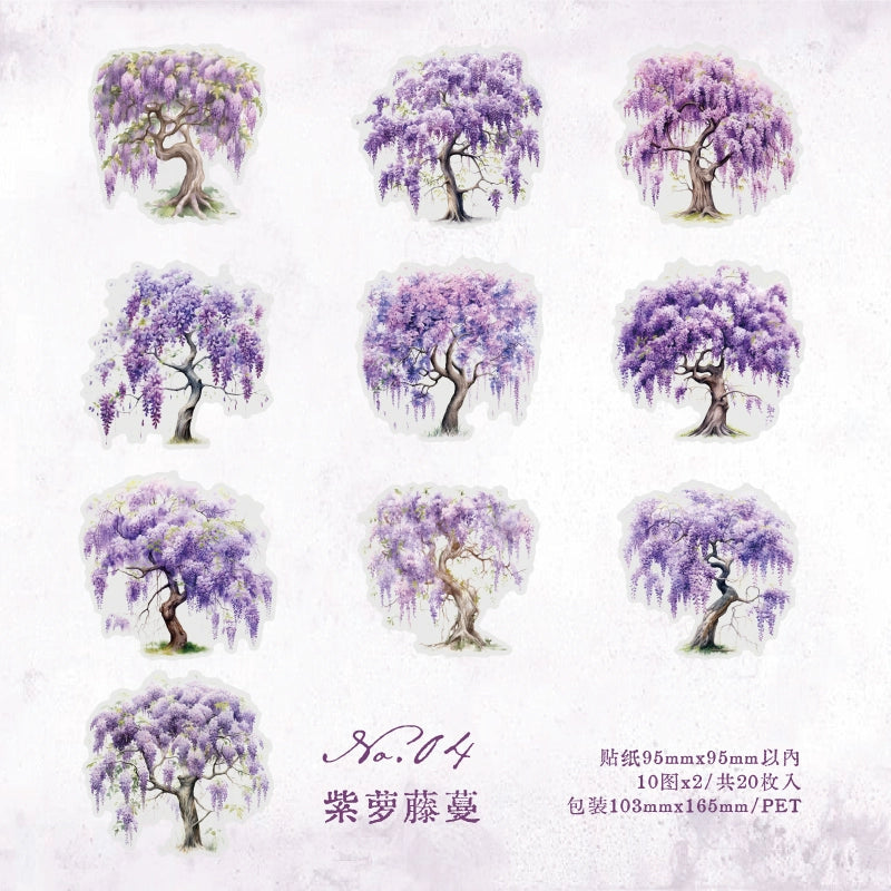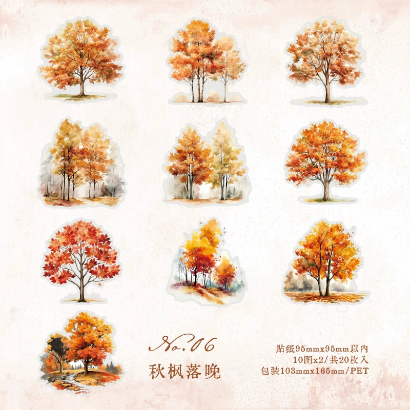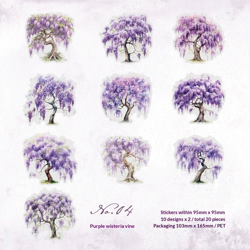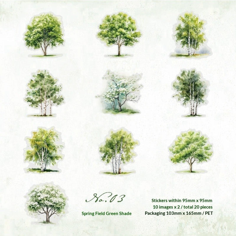 Experience the changing seasons with our Four Seasons Tree Sticker Collection. Featuring colorful trees in spring bloom, summer green, autumn gold, and winter frost, this premium PET sticker pack brings the complete cycle of nature to your journals and DIY projects.