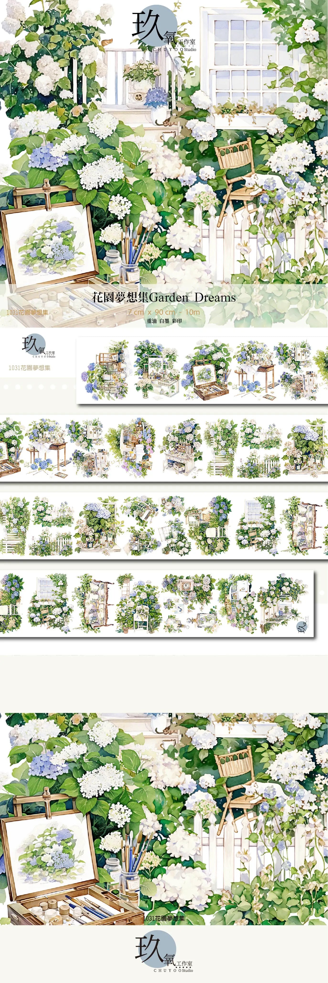Bring the enchanting beauty of a blooming garden to your creative projects with this Garden Dream PET decorative tape. Expertly crafted in Taiwan using premium ink printing technology, this tape features lush botanical designs that capture the vibrant colors and delicate details of a flourishing garden.