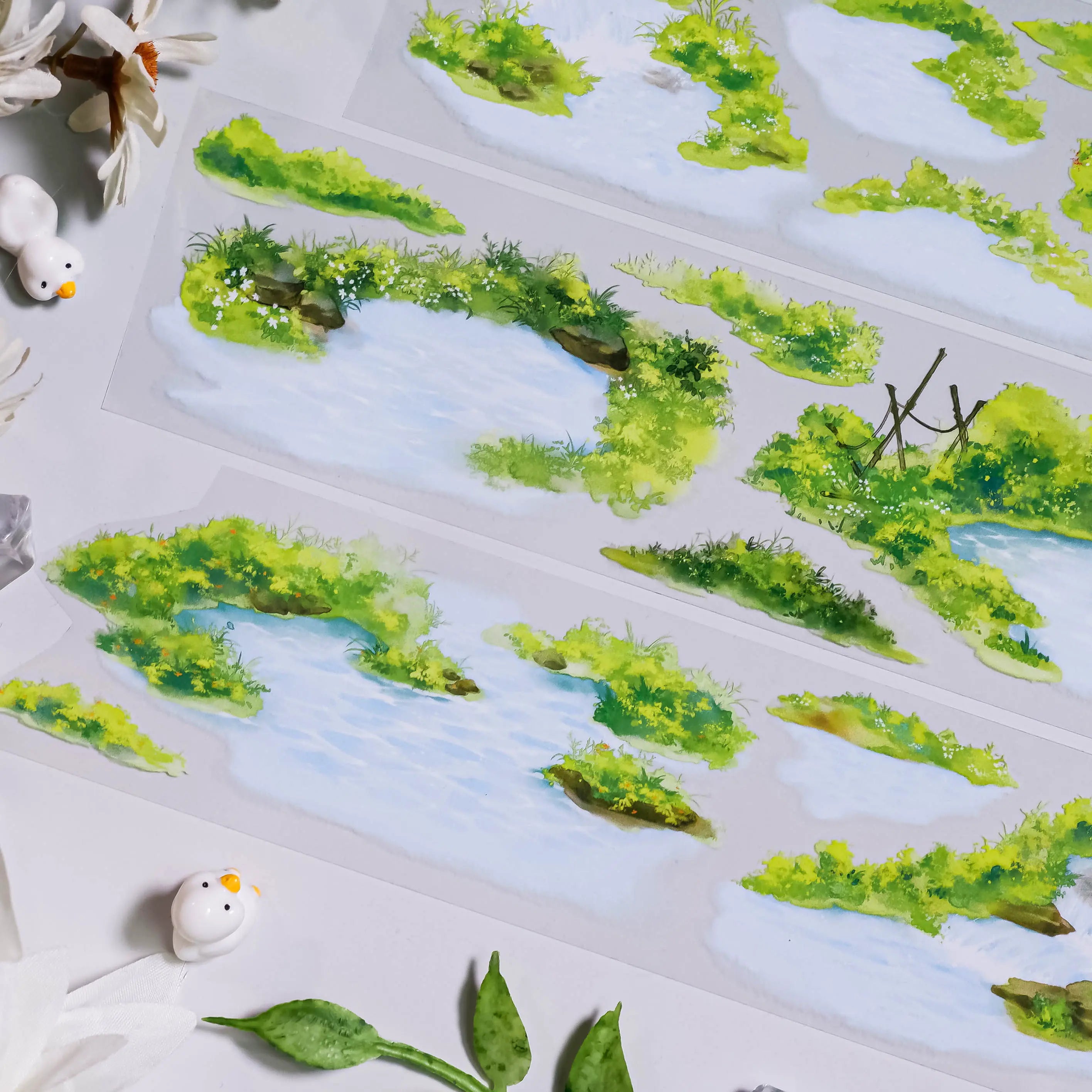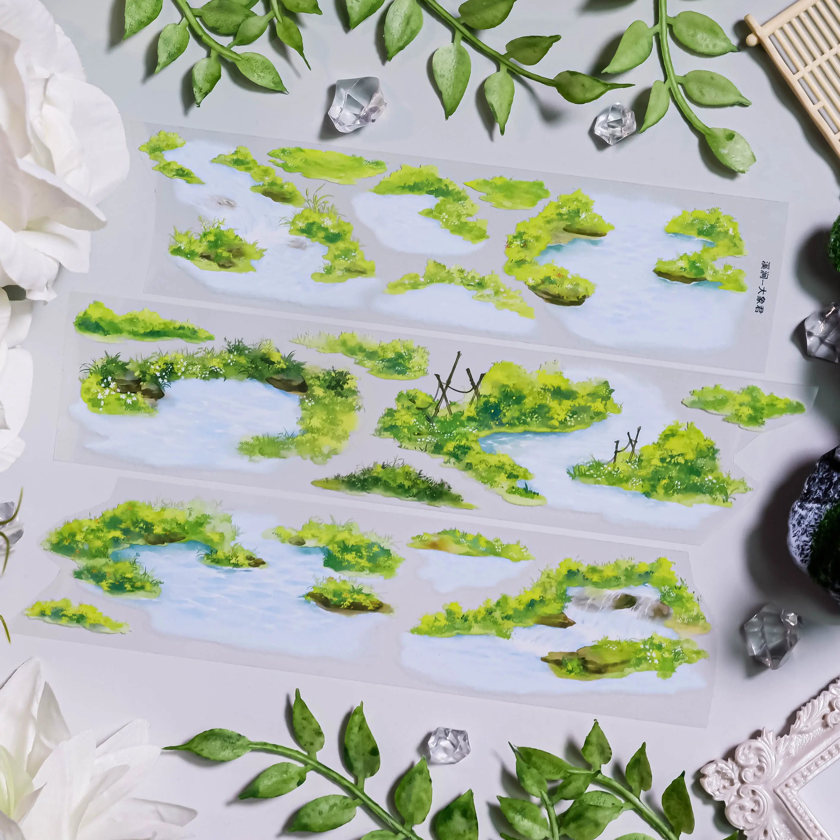 Immerse yourself in the serene beauty of mountain streams with this exquisite decorative washi tape. Featuring delicate landscape imagery of flowing water and natural scenery, this tape adds a peaceful, nature-inspired touch to your journals and crafts.