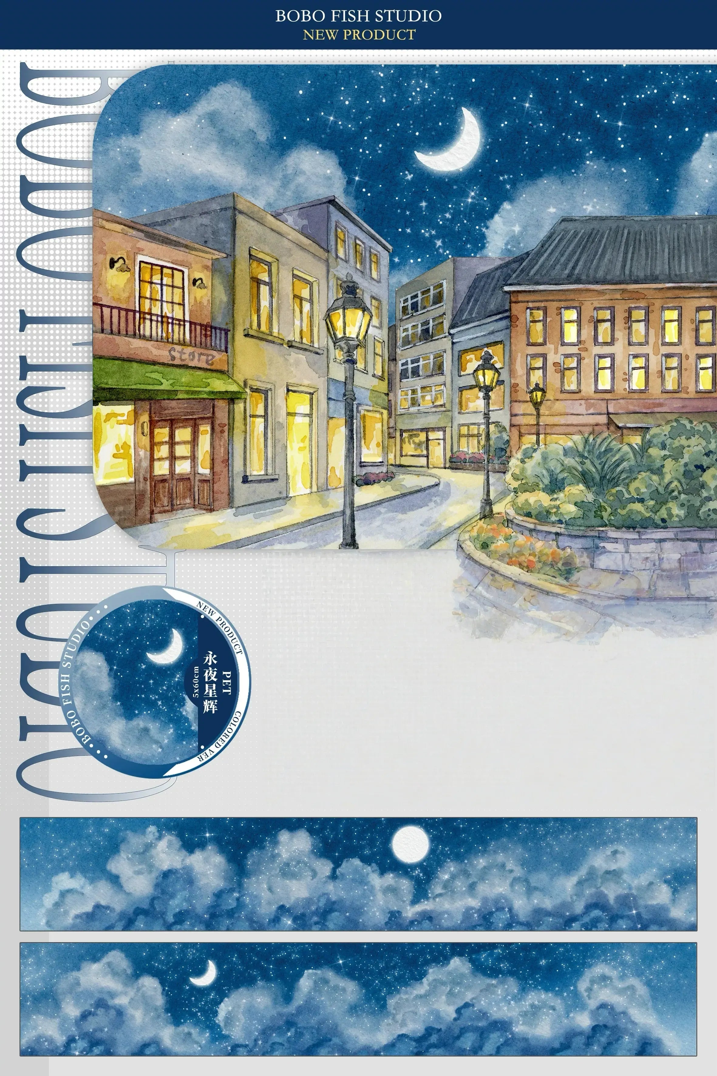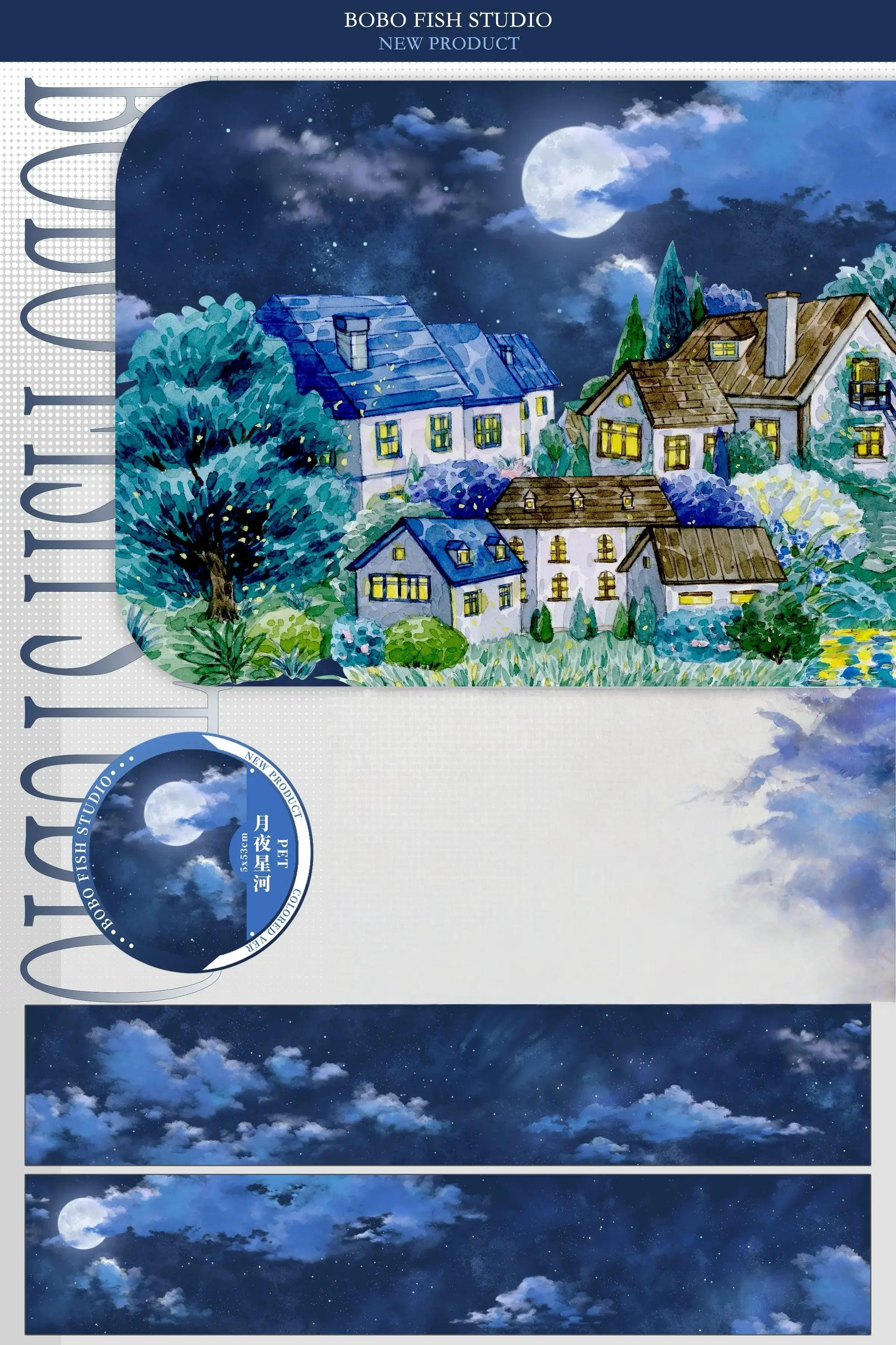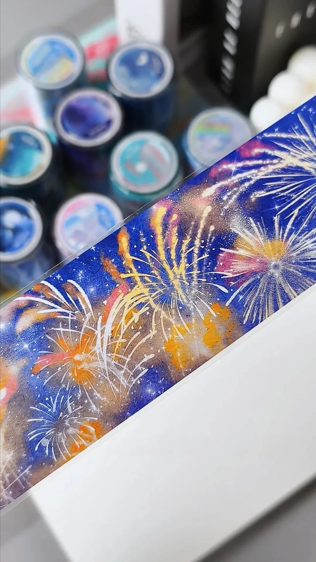 This premium PET washi tape features an enchanting sky landscape design with fireworks and dreamlike scenery. Perfect for journaling, scrapbooking, and creative projects that need a touch of magic.