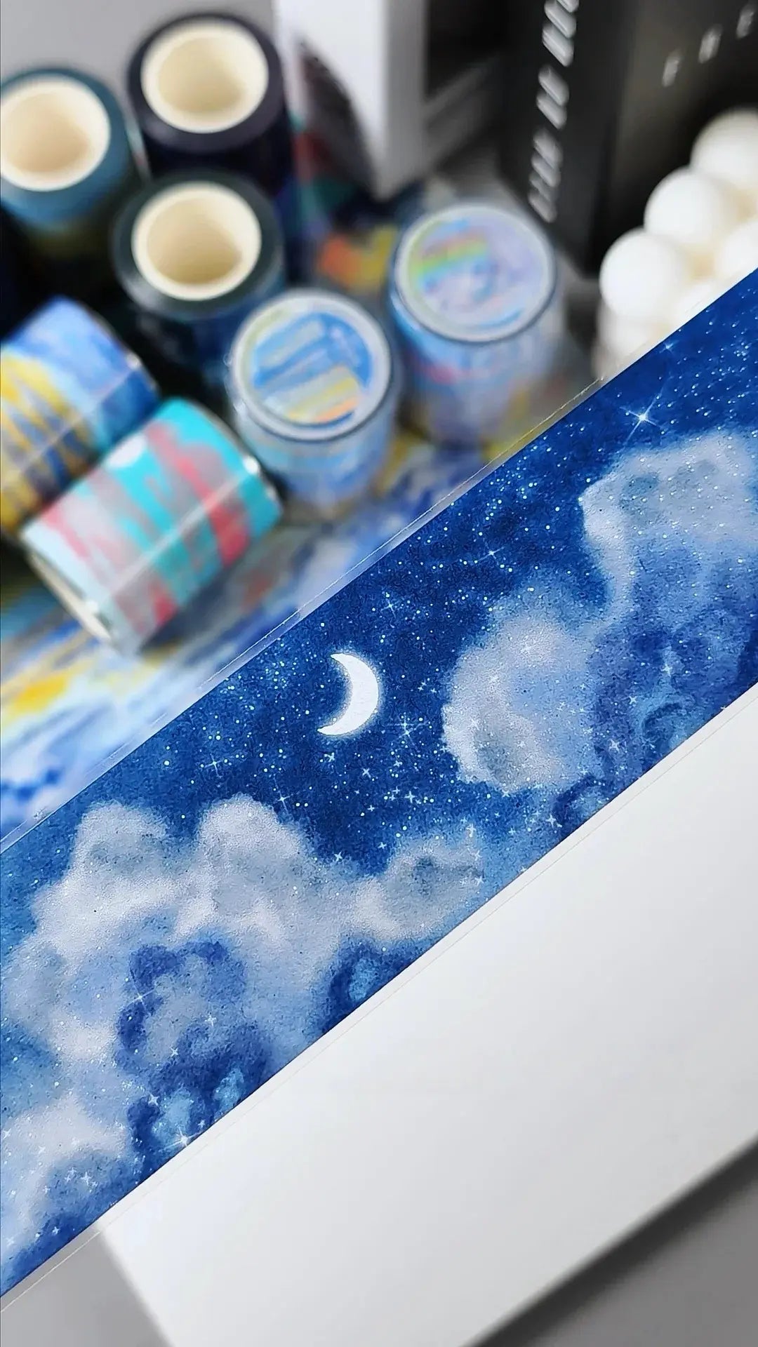 Add depth and atmosphere to your creative work with this beautiful celestial-themed decorative tape. Each roll brings the wonder of night skies and celebration to your pages.