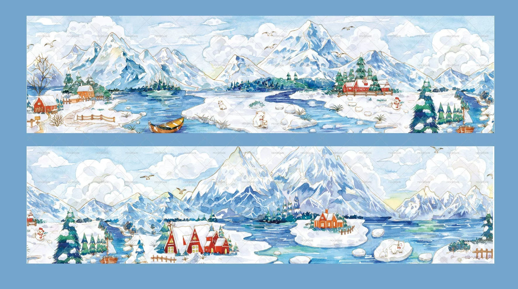 Capture the tranquil beauty of winter with this stunning snowy landscape washi tape. Featuring pristine snow-covered scenes and peaceful winter vistas, this premium PET tape brings seasonal elegance to your journaling, scrapbooking, and creative work.