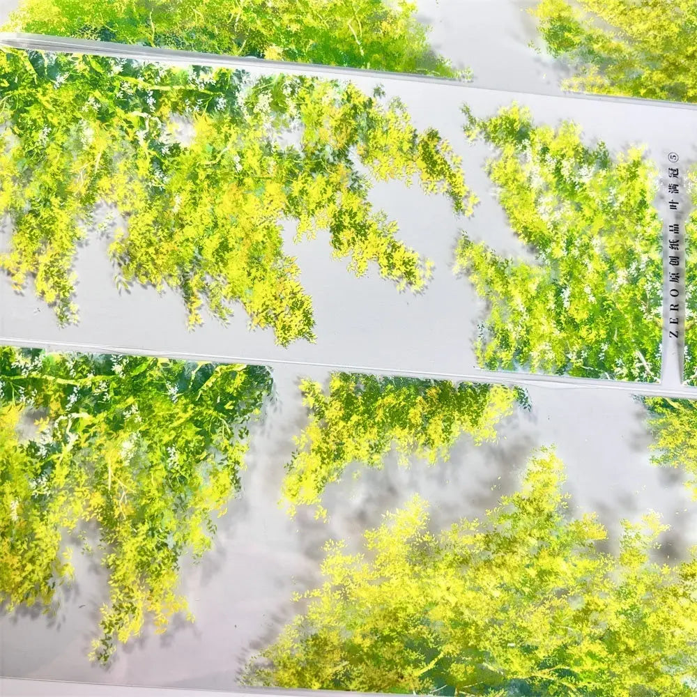 Drape your journal pages in a beautiful curtain of green with our 'Trees with Leaves 5' PET tape. This design features a dense cascade of hanging leaves, perfect for creating an overhead canopy or a lush, leafy border. It's an essential tool for scene makers looking to add depth, texture, and a vibrant touch of nature to their forest, park, or garden layouts.