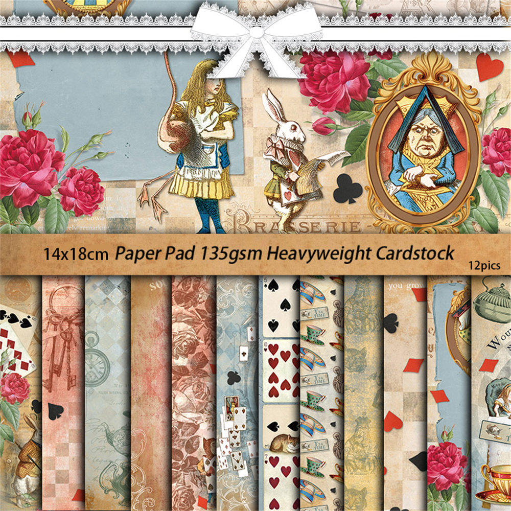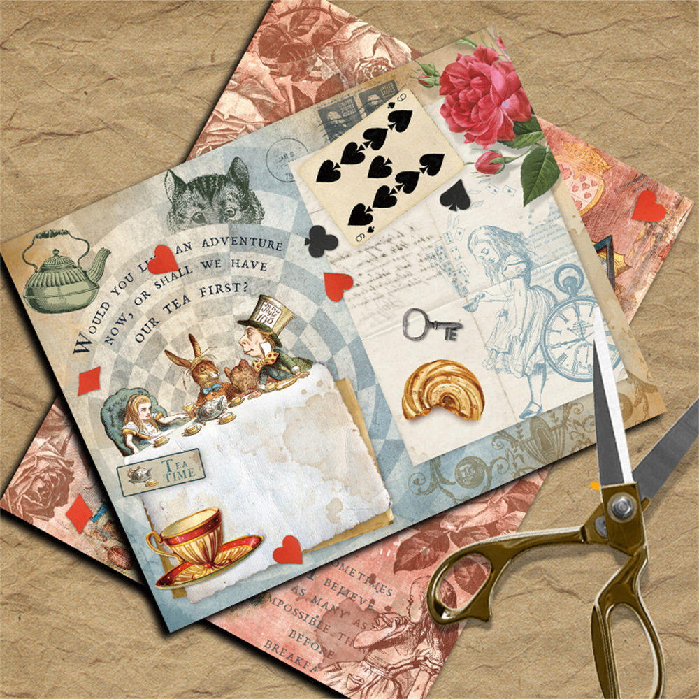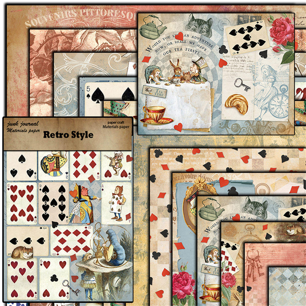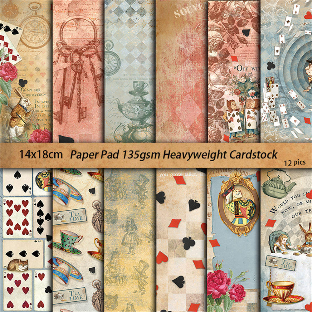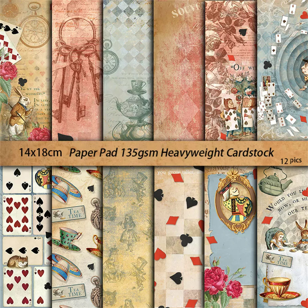 Vintage Alice's Gift European Background Paper - 12 Pieces Junk Journal Paper for Scrapbooking & Collage