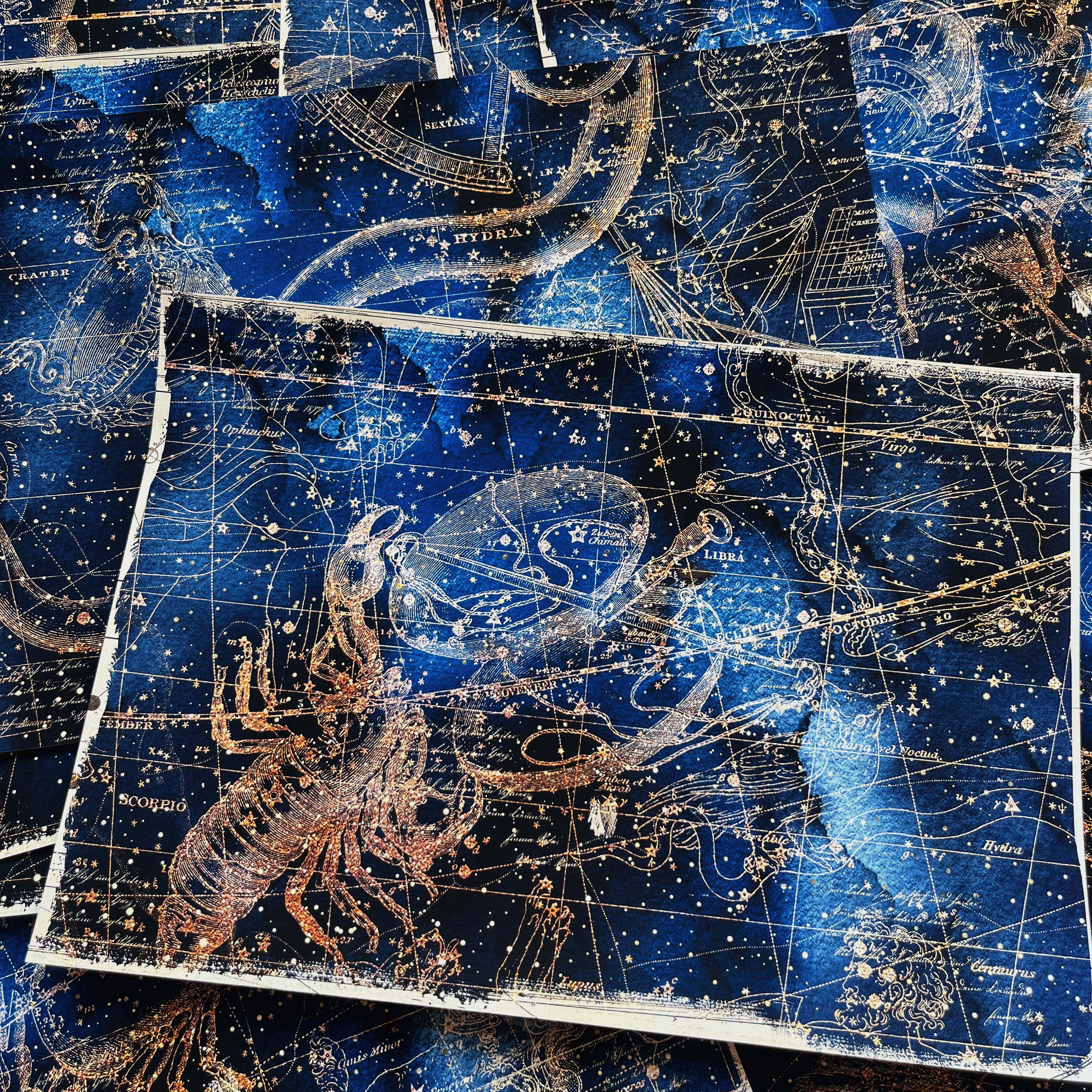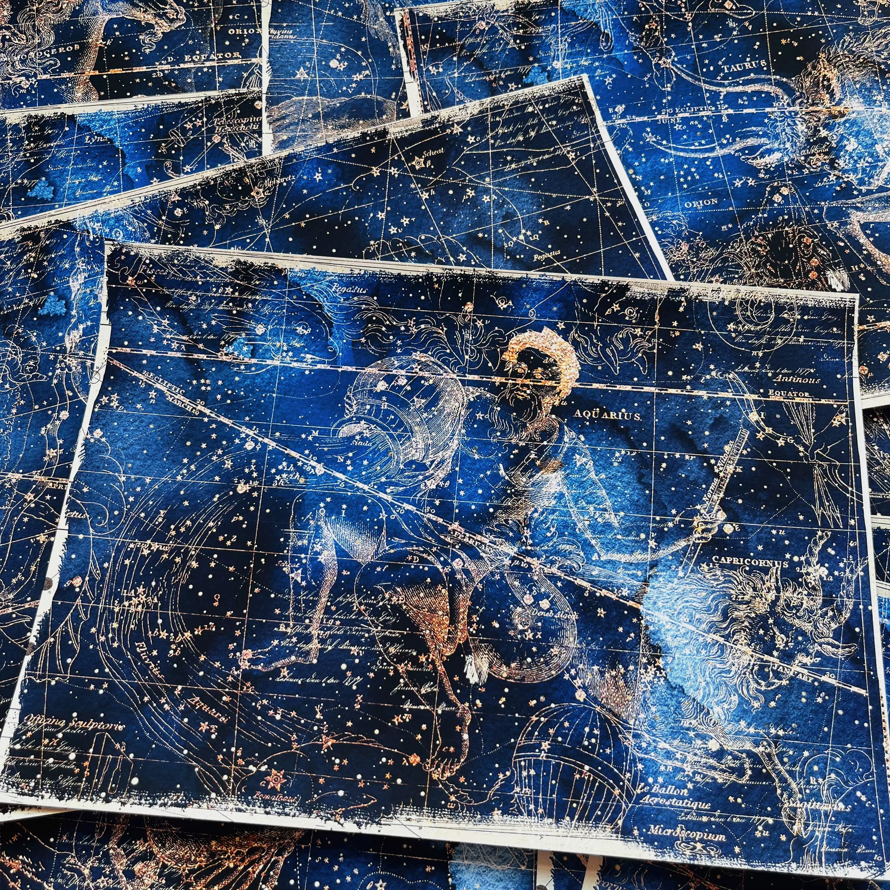 Vintage Astrology Constellation Junk Journal Paper - Cosmic Magic Starry Sky Background Paper for Scrapbooking