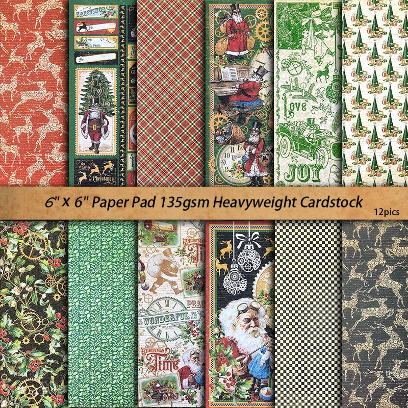 Vintage Christmas Santa Claus Junk Journal Paper - 12 Pieces Holiday Time Background Paper for Scrapbooking