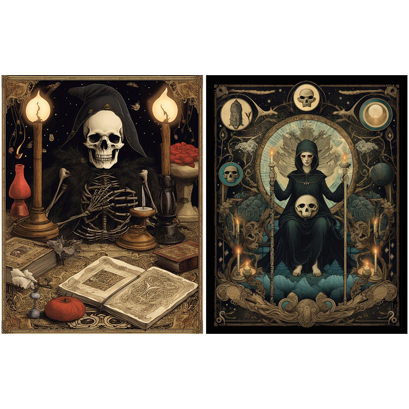 Vintage Dark Gothic Paper Pad - 16 Sheets Skulls Wizards Figures Scrapbook Decorative Paper
