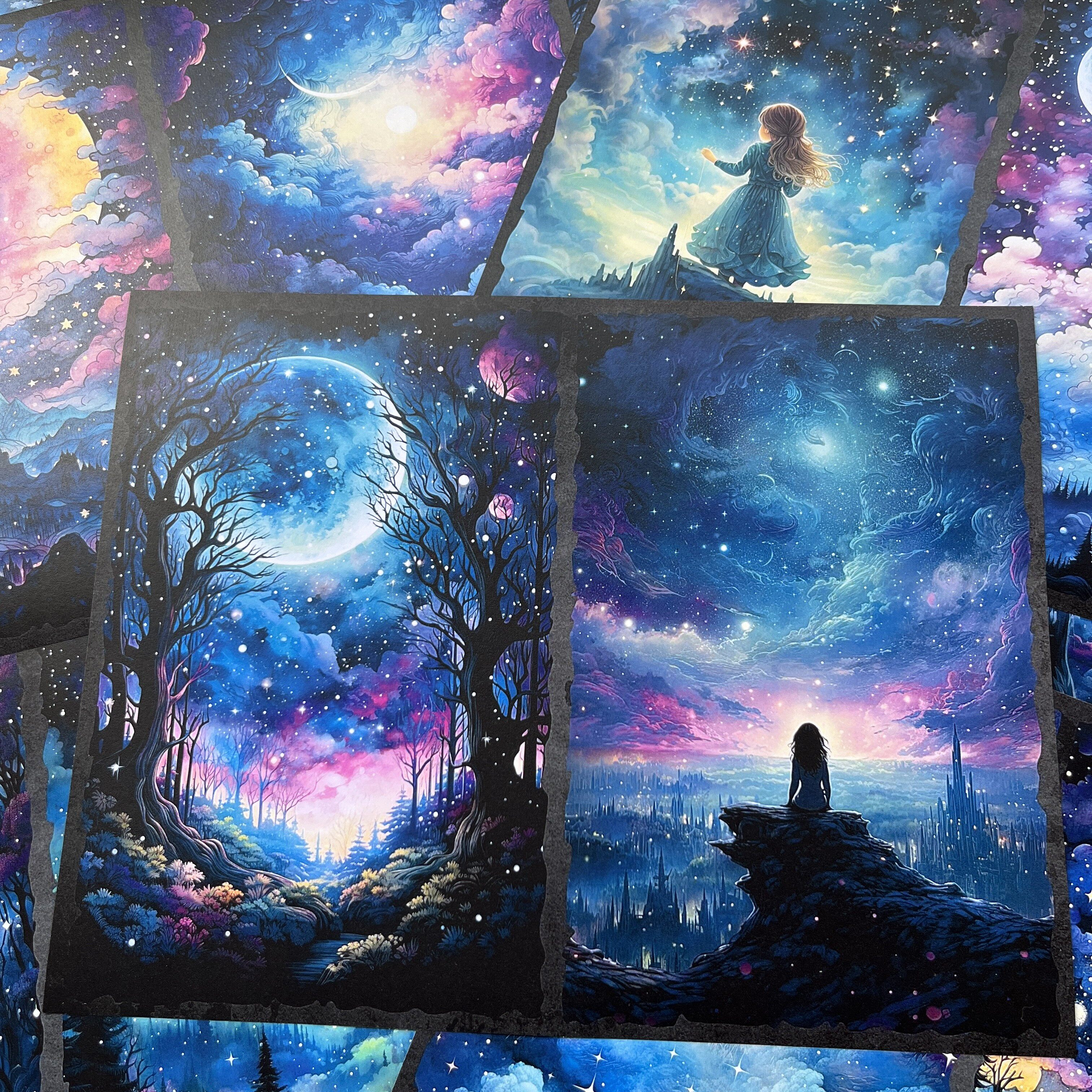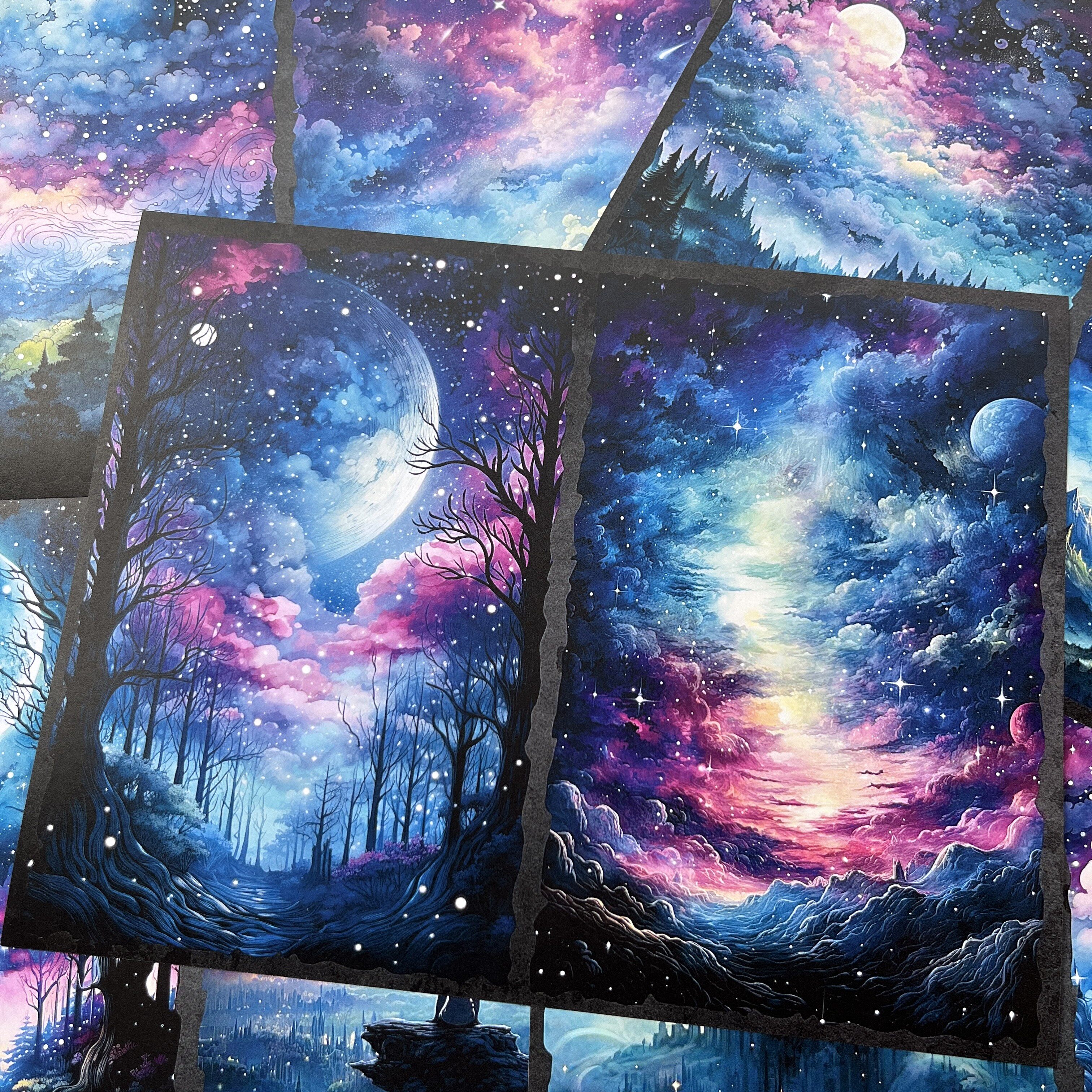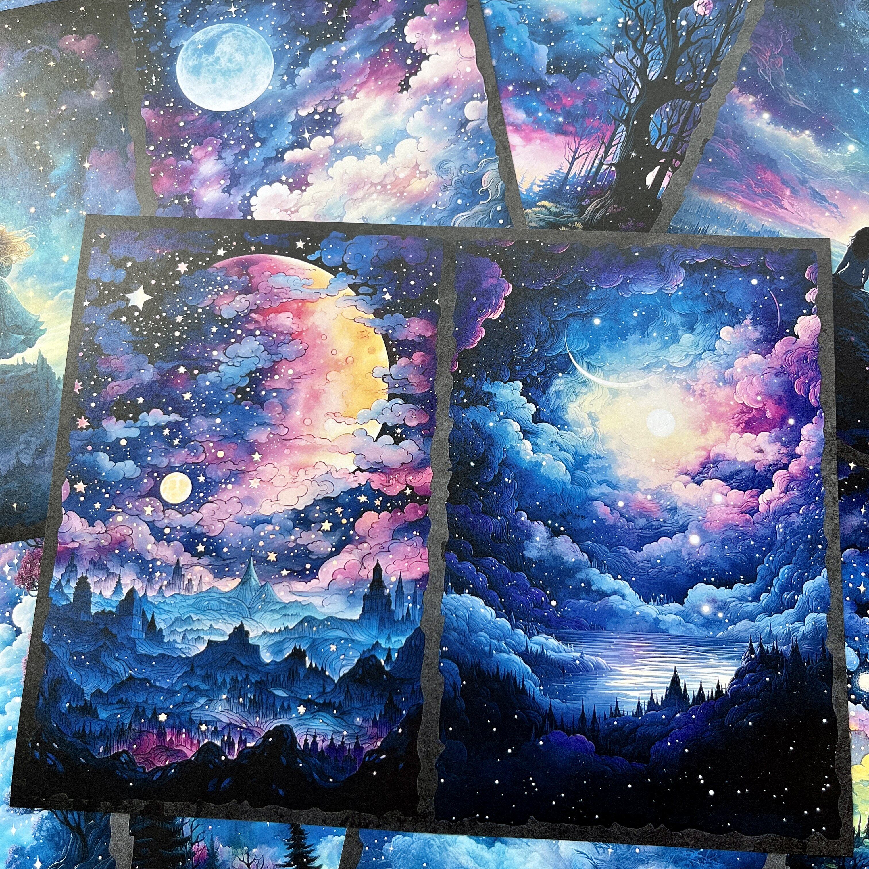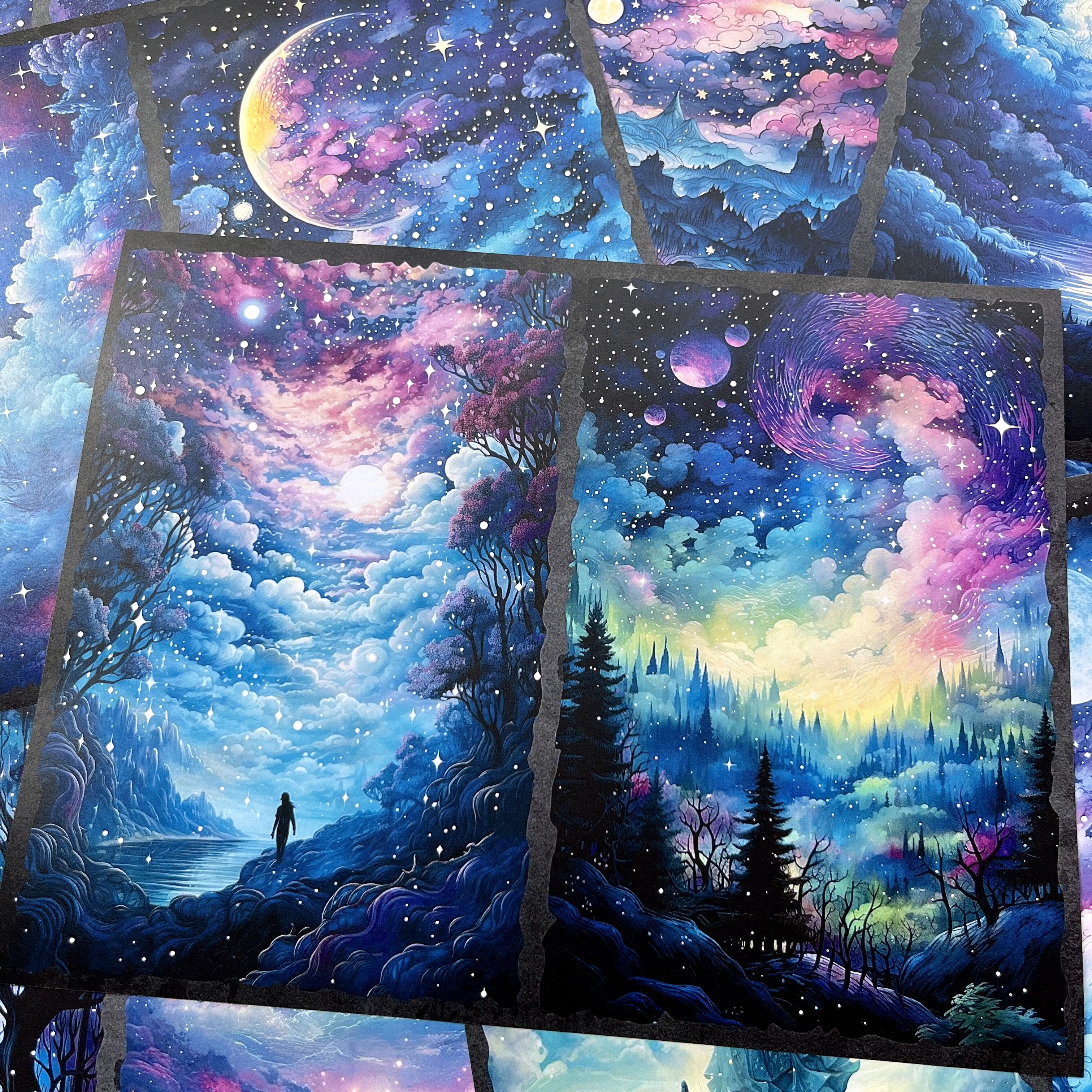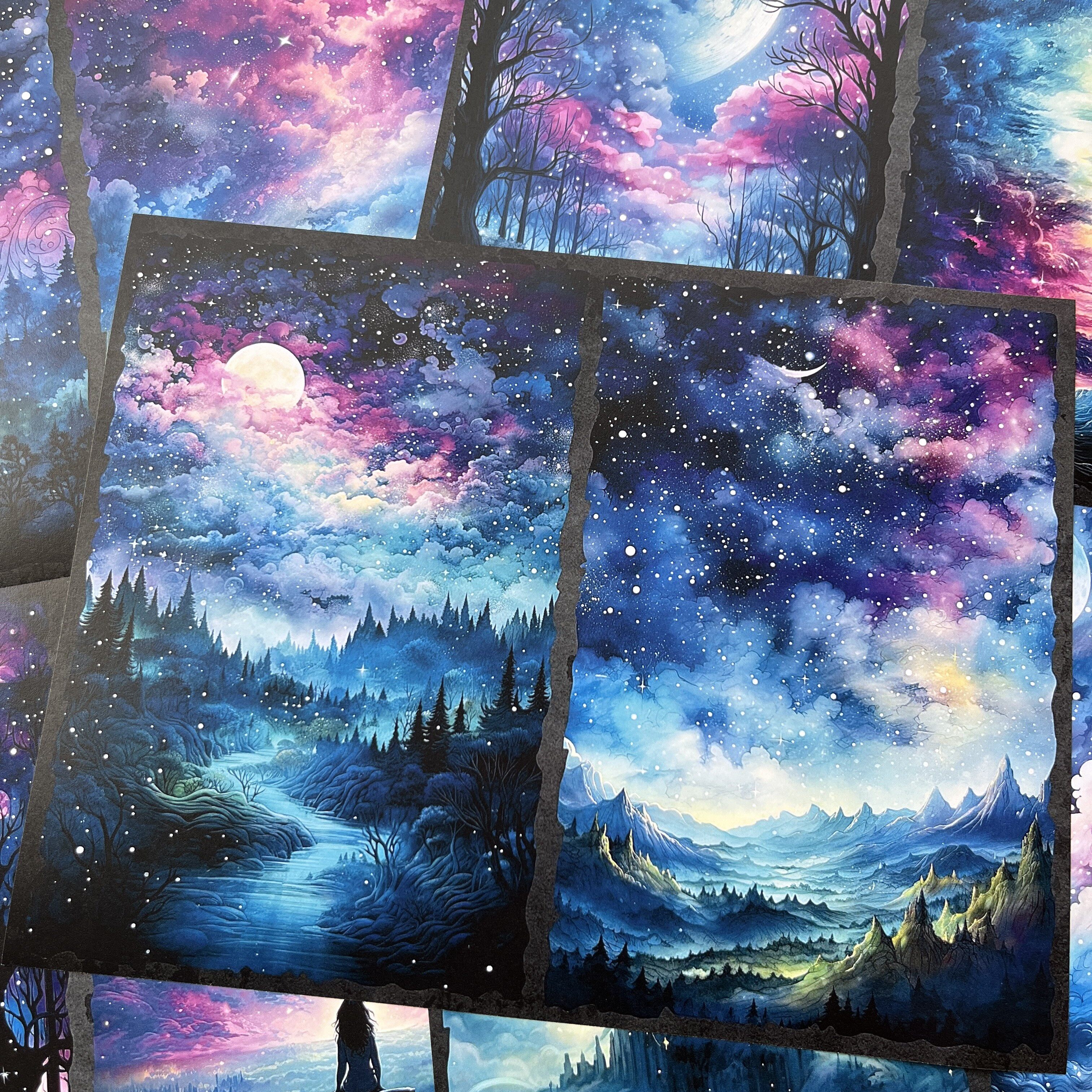 Vintage Magic Starry Sky Forest Junk Journal Paper - Cosmic Background Paper for Scrapbooking & Photography