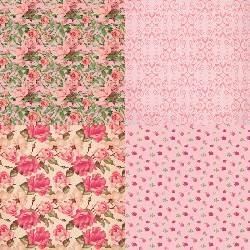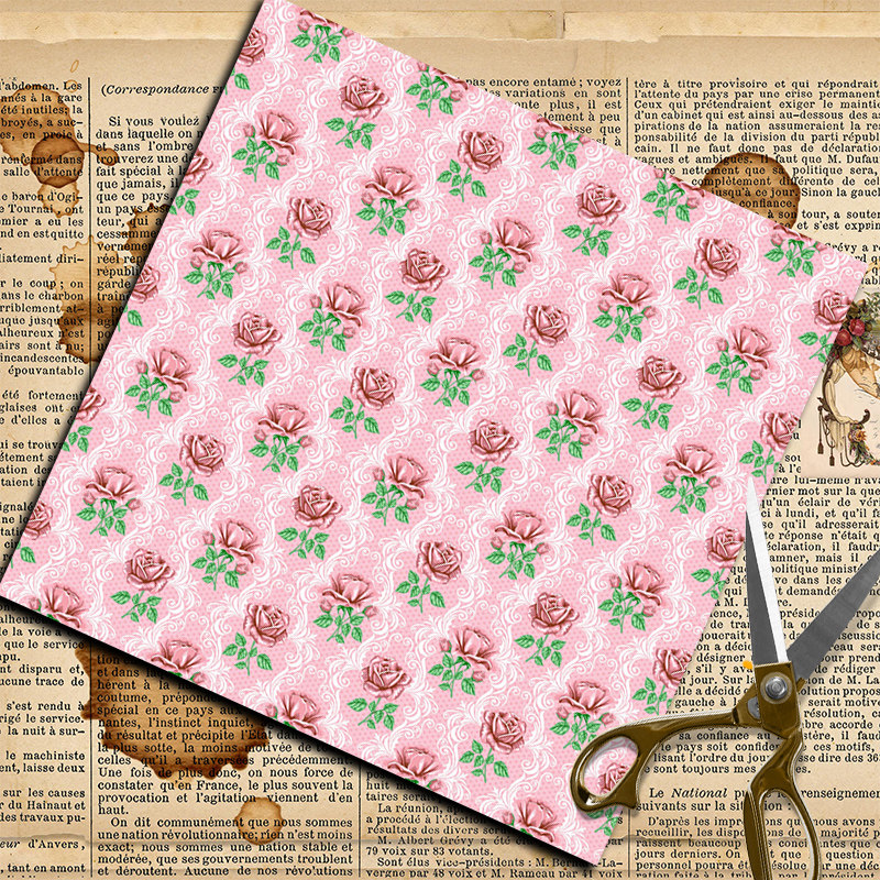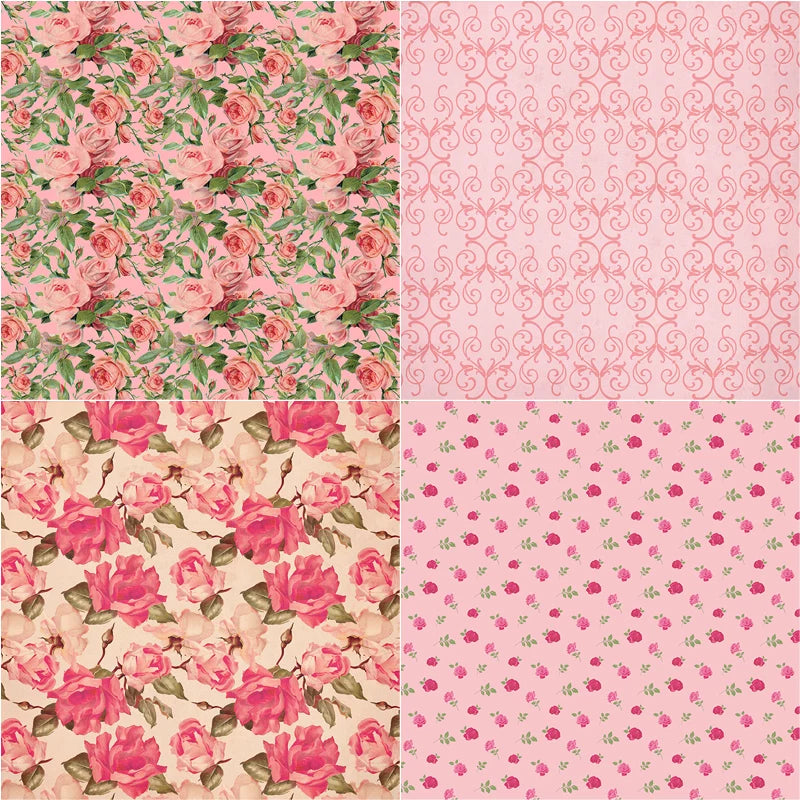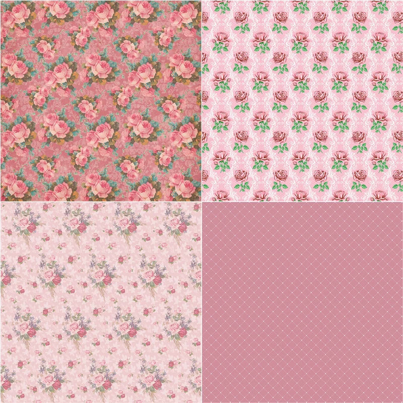 Vintage Pink Floral Junk Journal Paper - 12 Pieces Foldable Background Stickers for Scrapbooking & Gift Decoration
