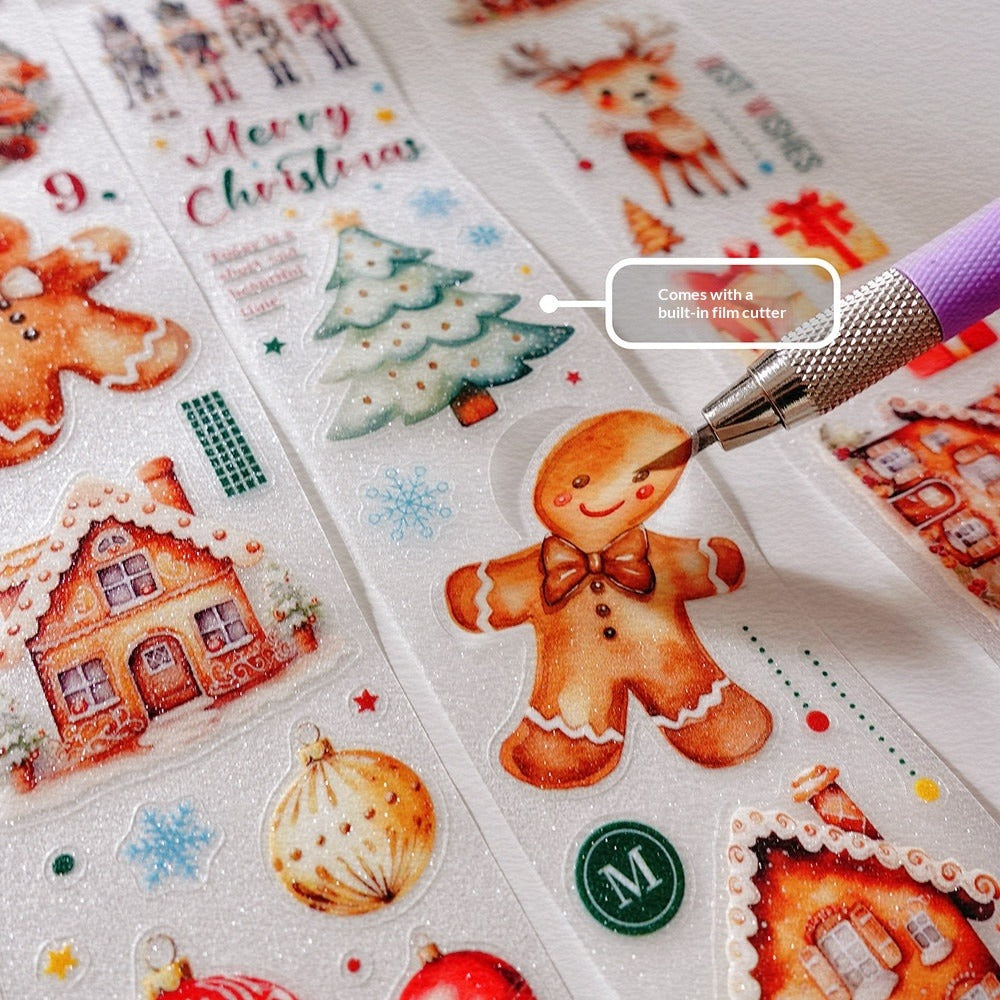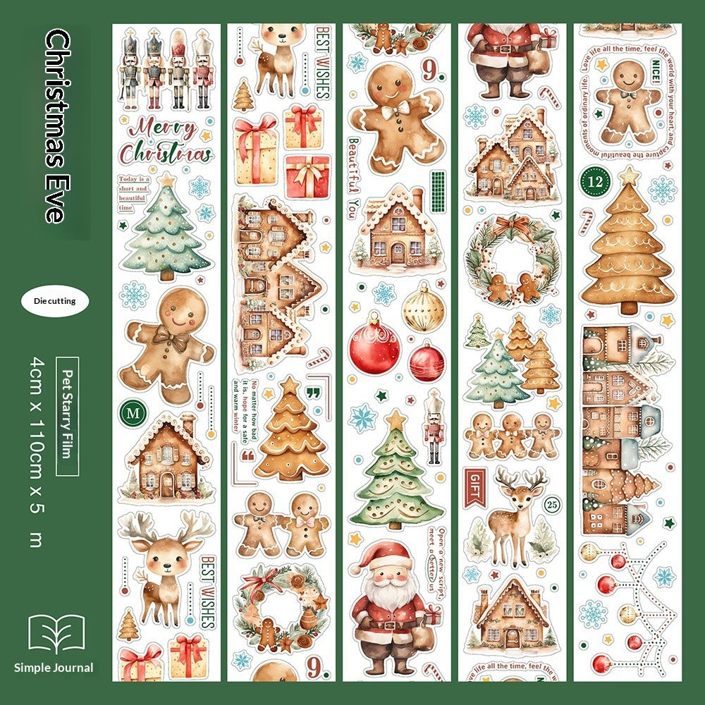 Bring warmth and whimsy to your winter journaling, holiday cards, gift packaging, or seasonal decorations. This limited edition tape captures the cozy essence of winter celebrations with its playful mix of festive characters and elegant floral motifs.