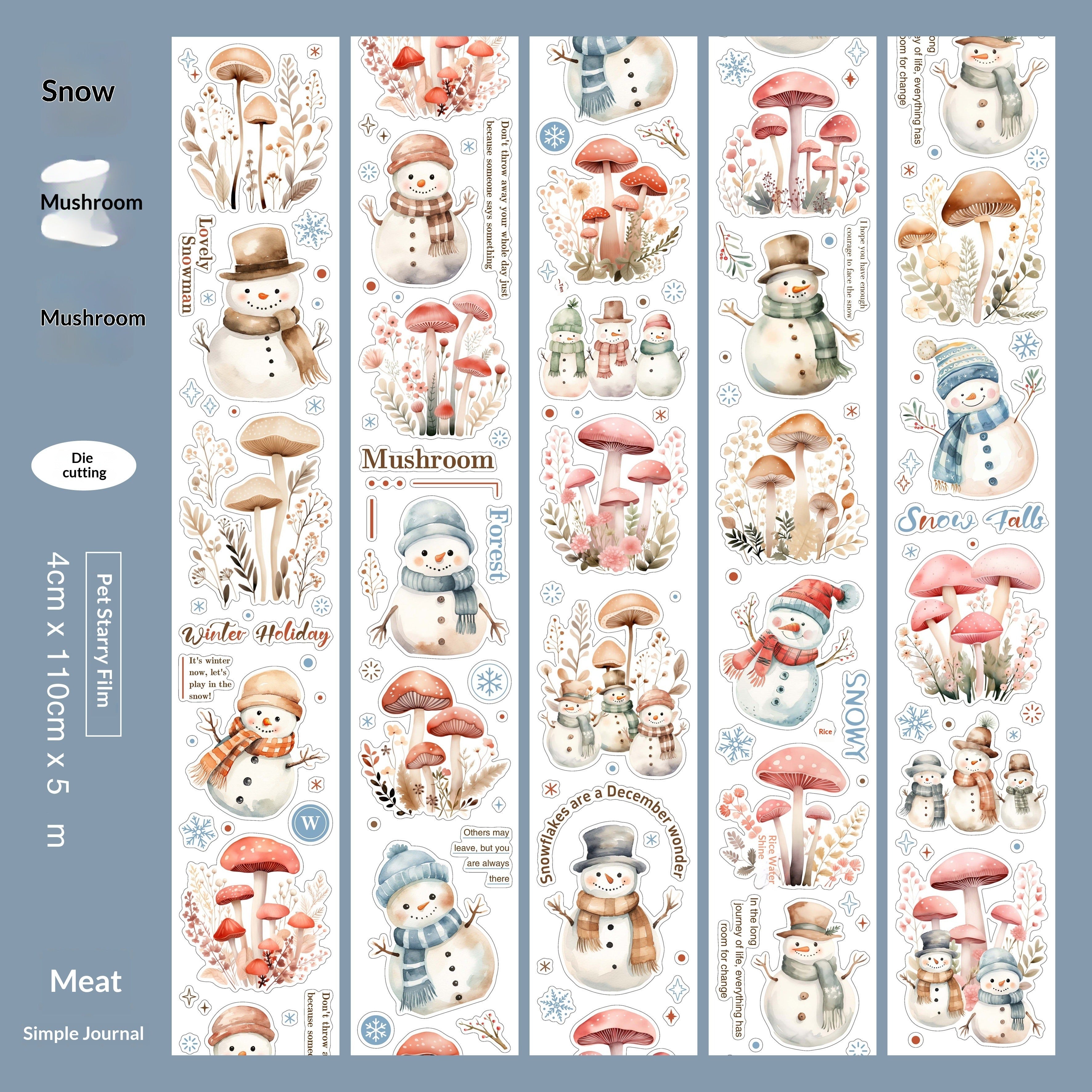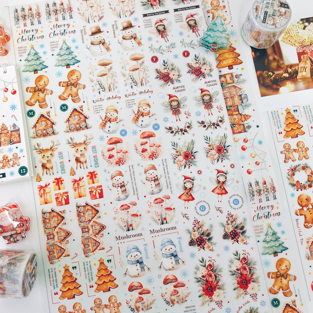 Transform your journal pages and scrapbooks with this charming winter-themed washi tape featuring delightful Christmas snowmen, blooming winter flowers, and adorable girl characters. Perfect for capturing the magic of the holiday season in your creative projects.