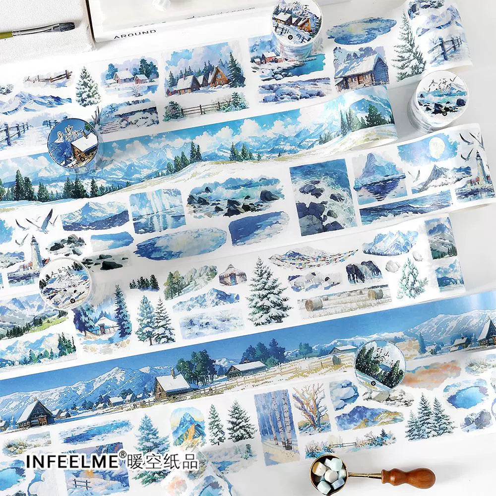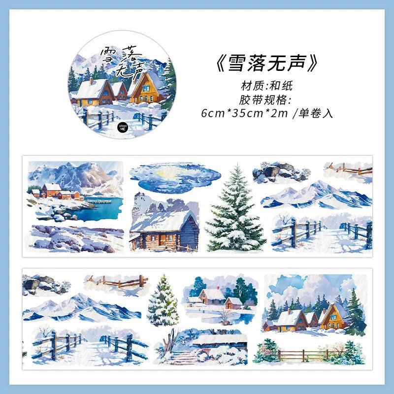 Capture the serene charm of winter landscapes with our Winter Snow Scenery Washi Tape from the Slow Season collection. Featuring peaceful snowy scenes, natural winter landscapes, and atmospheric seasonal elements, this premium PET roll tape is perfect for creating immersive winter spreads and nostalgic seasonal projects.