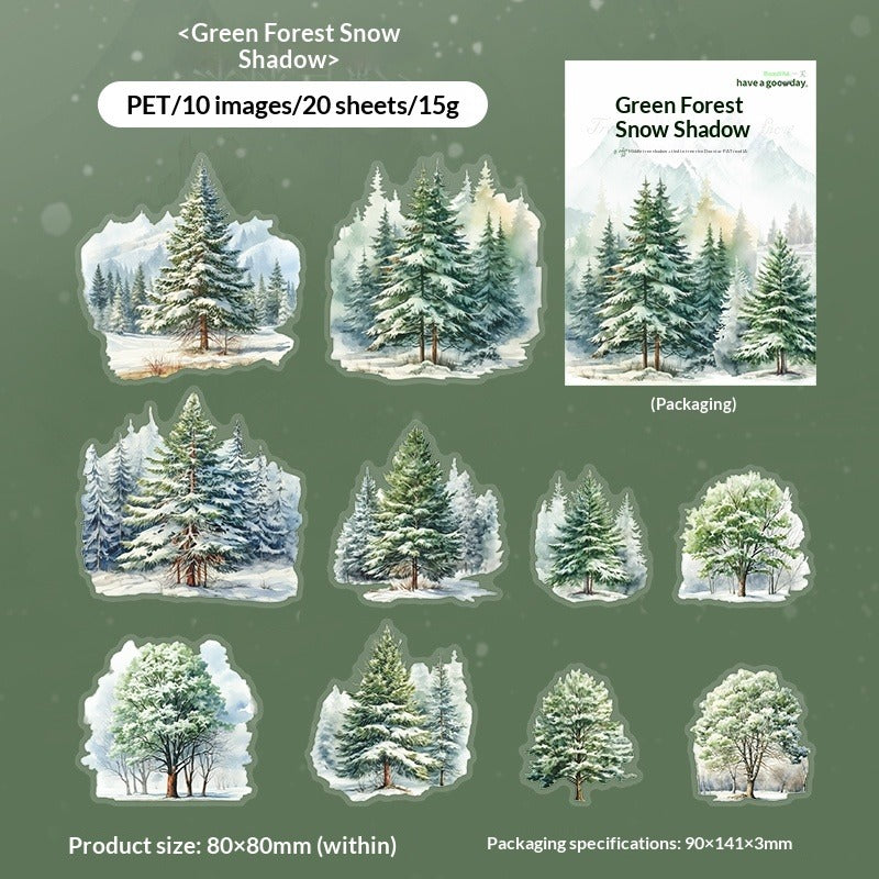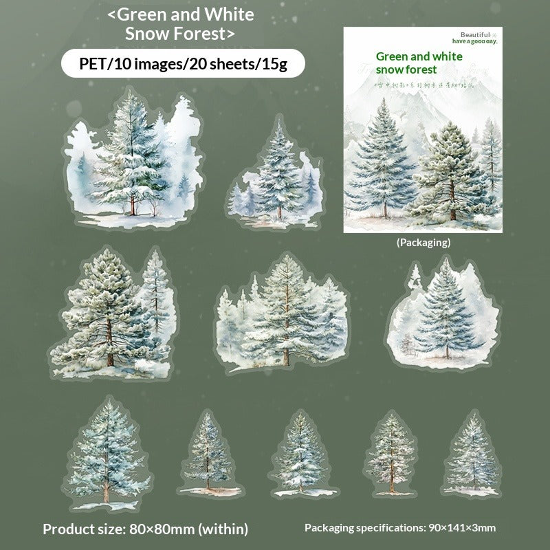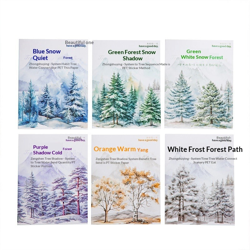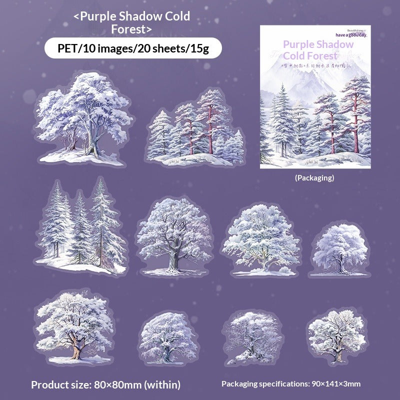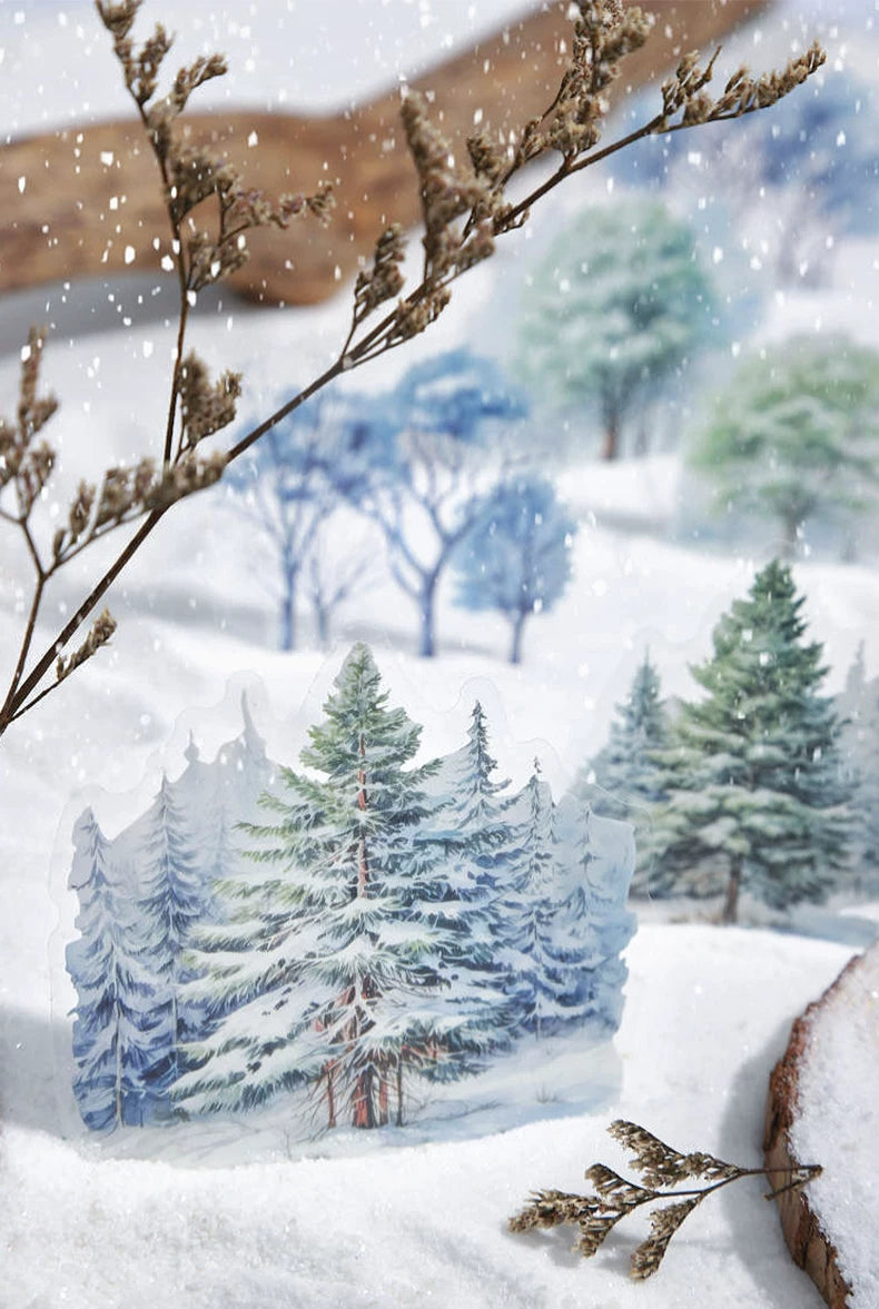 Create enchanting winter landscapes with our Winter Snow Tree Silhouette Sticker Collection. Featuring elegant tree shadows in snowy scenes, frosted branches, and winter forest elements, this waterproof PET sticker pack brings the peaceful beauty of winter to your journals and DIY projects.